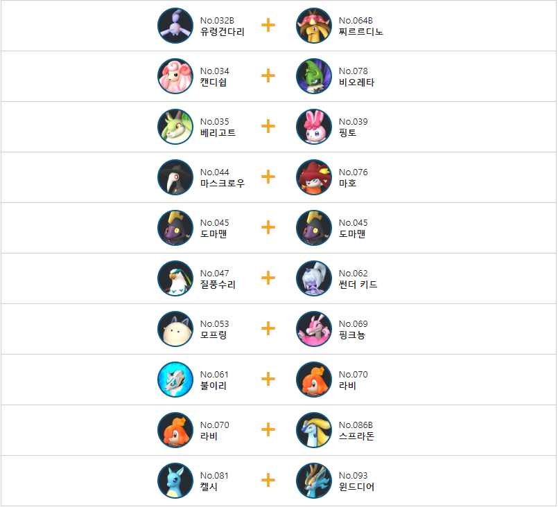 도마맨의 교배 배합표는 다음과 같습니다.