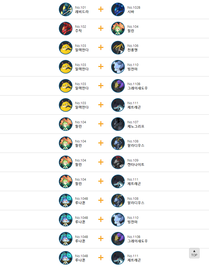 라바드래곤의 교배 배합표는 다음과 같습니다.