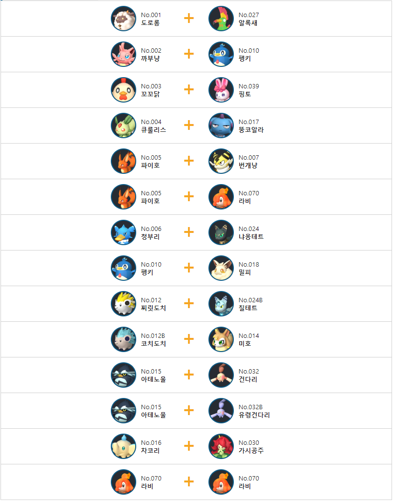 라비의 교배 배합표는 다음과 같습니다.