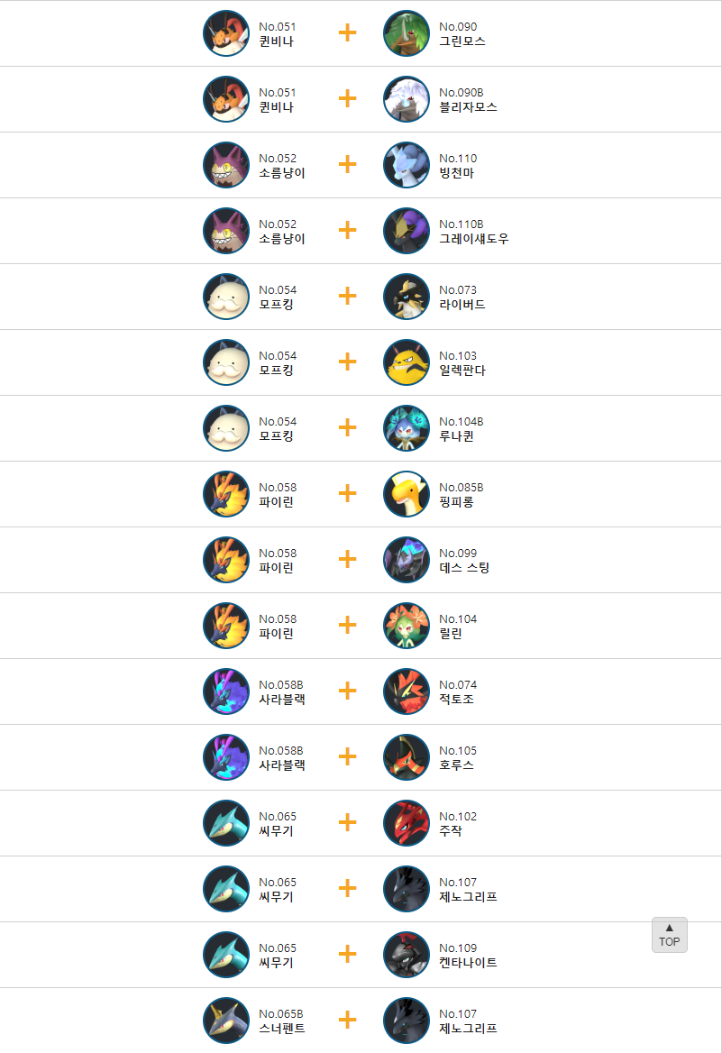 레비드라의 교배 배합표는 다음과 같습니다.