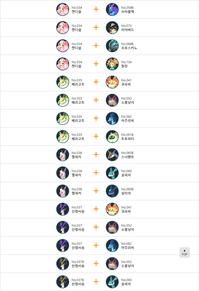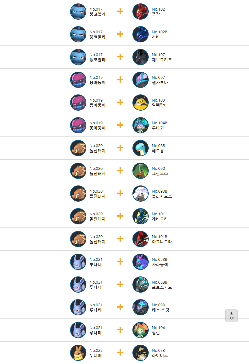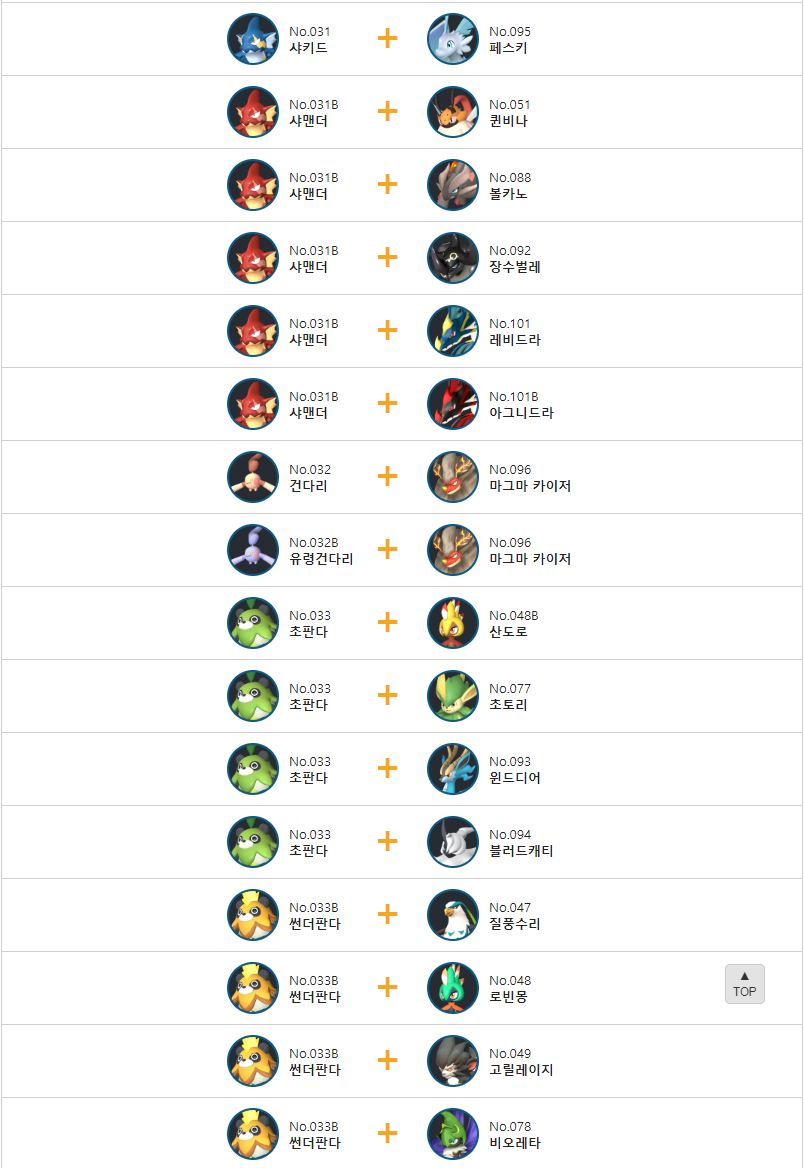 3. 만티파이어 교배 배합표