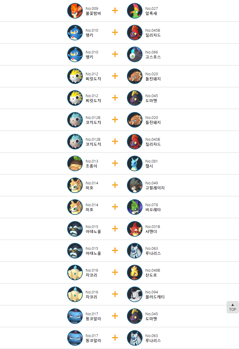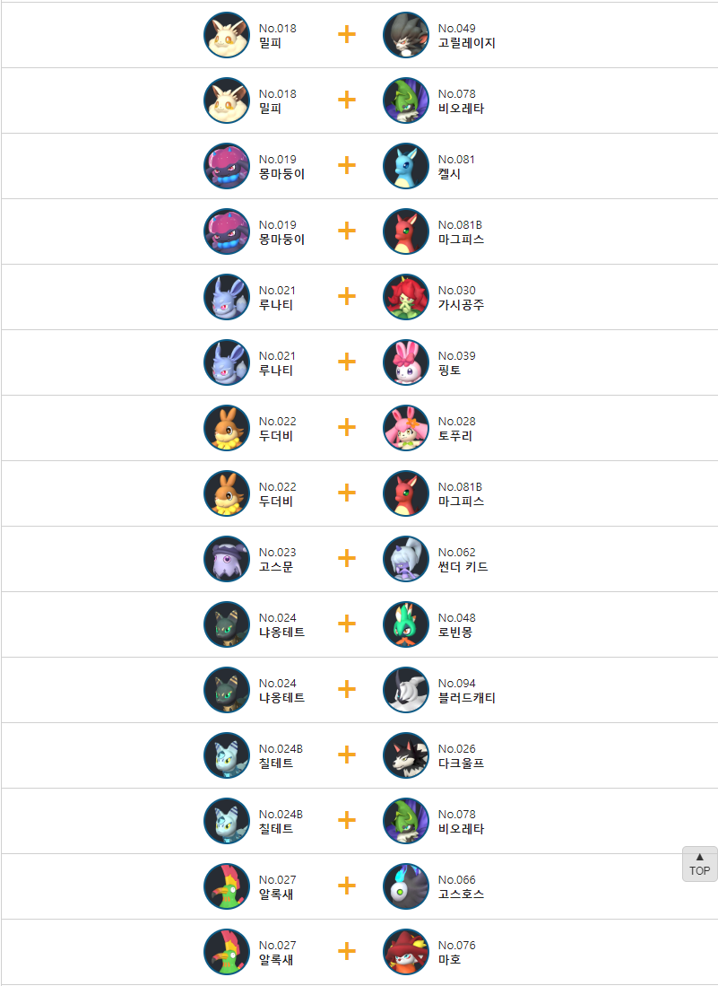몽지의 교배 배합표는 다음과 같습니다.