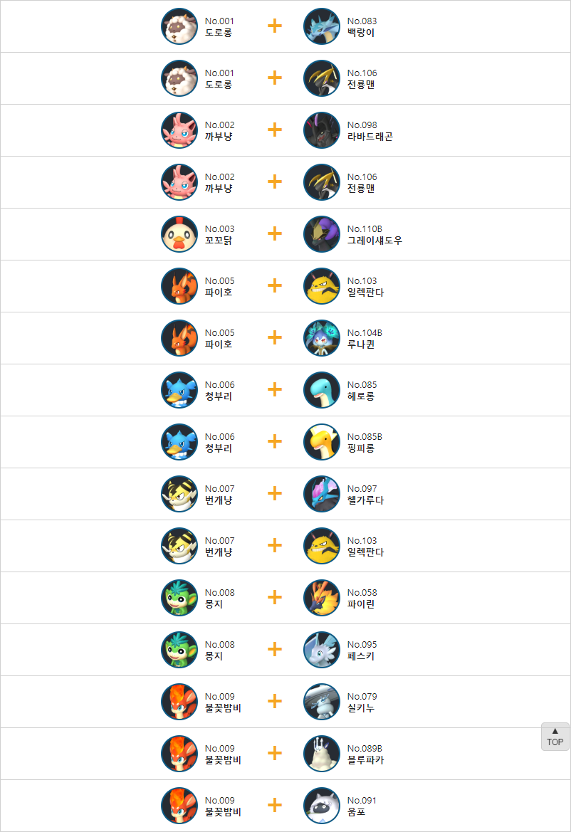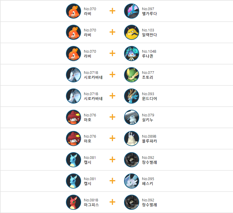베비뇽의 교배 배합표는 다음과 같습니다.