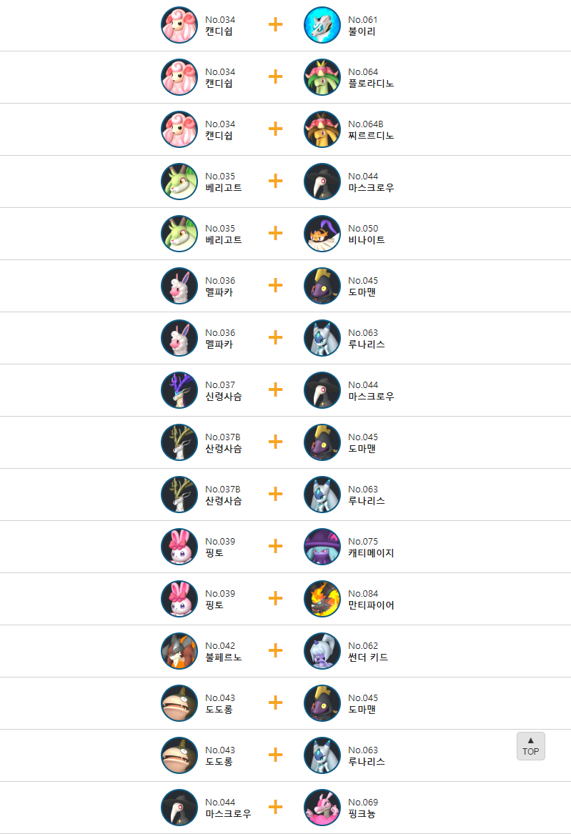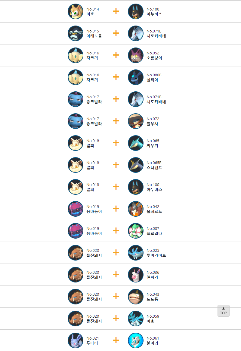 블러드캐티의 교배 배합표는 다음과 같습니다.