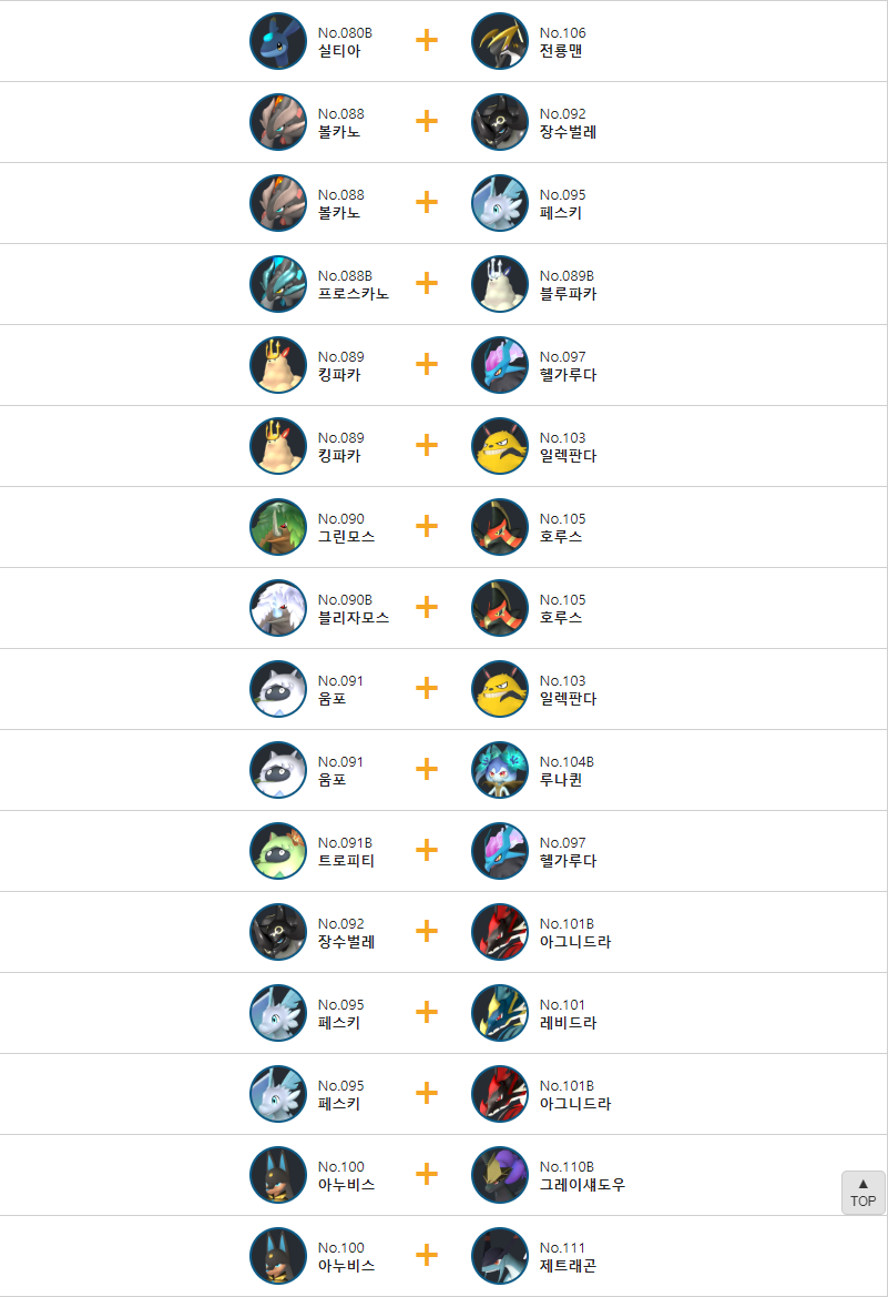 퀸비나의 교배 배합표는 다음과 같습니다.