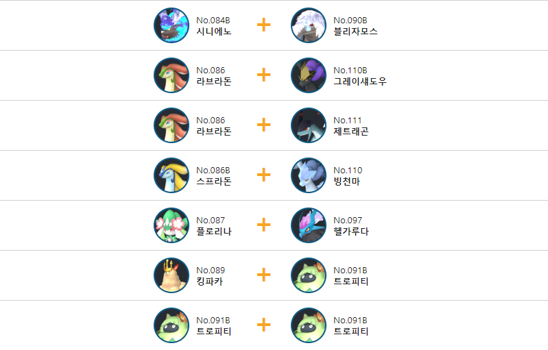 트로피티의 교배 배합표는 다음과 같습니다.